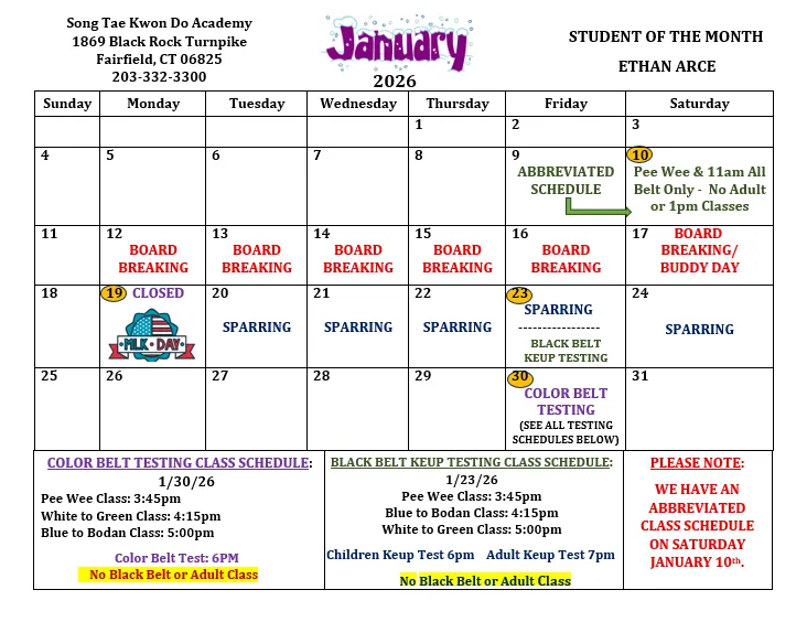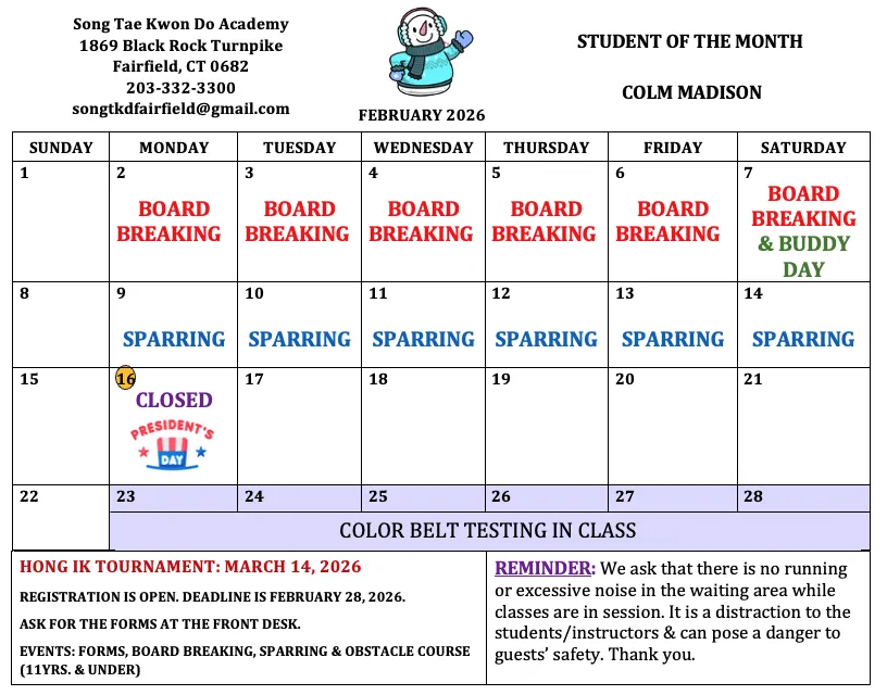 What's Happening in the Dojang This Month!