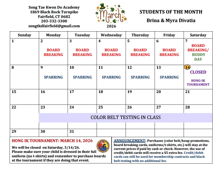 What's Happening in the Dojang This Month!